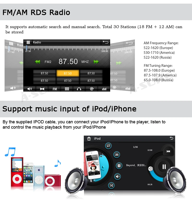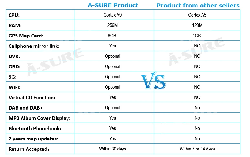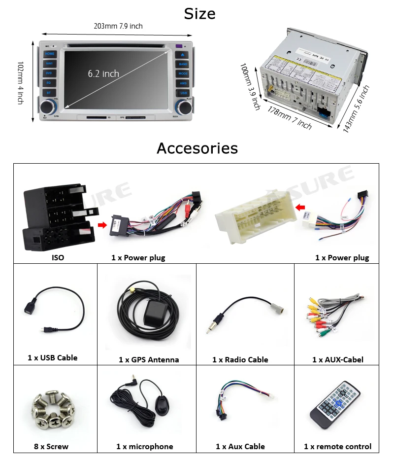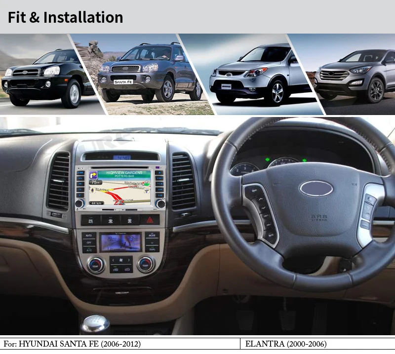 A-Sure Car DVD Radio Player Navigation GPS for HYUNDAI SANTA FE and ELANTRA with wifi DVR RDS Bluetooth steering wheel function The Auto Multimedia System Fits for: HYUNDAISANTA FE(2006-2012) ELANTRA (2000-2006) Notice: *The raido is full-touch screen, remote control is not needed, which is not included in this item. *BeforePurchase,dopleasecarefullycheckthedimensionssoastoavoidinconvenience. *If there is factory amplifier (subwoofer) in your car, you might need to buy extra power cable (GBP15) to get sound work properly. Please note that shipping from China will charge Custom Tax. Any question, please do not hesitate to contatc us. Why Shop With A-Sure? A-SURE aims to bring the most exciting products to your door. Are you looking for new products and technologies that can facilitate your life, as well as with a very good price/performance ratio? All these are what we A-SURE do and concern for you. Actually we represent a manufacturer who produces some of the most competitive products on market, will carry a vast selection of value-priced novelties. And all goods can be brought to your door at reasonable prices. Your order will be QC checked for minimum 3 times prior to delivery to you. Think of A-SURE as most efficient and reliable cross-border shopping helper around. We have over 8 years worth of experience in In-Car entertainment. Professional and Fast service, Constant Innovation help us to be the one you can count on. You can get the below unique service and features from our commodities: All our items are tested to ensure working properly before shipping. All our items come with a 1-year Manufacture Warranty.The warranty will not cover damage from improper installation, accident, misuse, abuse, improper wiring, and incorrect voltage operating the unit against the instructions in the owner's manual. You may cancel your order within 30 days If the article is found to be defective upon receipt - by returning the article for refund. The time limit begins after receipt of this notification in writing, but not before receiving the goods to consignee. Buyer must pay the postage cost for sending the item back to us under any circumstances. Please inform us of the reason of your order revocation and send us a clear picture or a video as a proof. Items returned to us without a report will not be processed. We highly recommend that all items are installed by professionals. We will not be responsible for items that have been damaged during installation by non-professionals.Please read all ourterms stated in our listing before purchase Note: Installation Fees are out of our control, they must be paid by Buyer. Installation fees are not included in this transaction, they will not be refunded/covered by usat any circumstances.