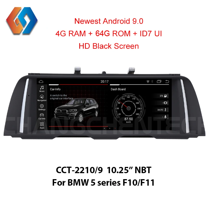Fitments:This 10.25 inch android unit fits for BMW 5 Series F10/F11(2013-2017) original NBT System, if your car is CIC system, you can search another model by this item number: BBA22B09/9 Kindly Attention:Please leave us messages after ordered if your car has middle speaker or not, the ISO harness is different. If you are not sure about the fitment, please send us your car dashboard image and tell us the year of the car.To avoid any damage because of installation, it would be better to have professional person to do this job. New 1920x720 HD Black ScreenUpgraded NEW higher quality HD black screen(second version of black screen)1920 x 720 resolution, nicer display than ever! Built-in CarPlay Function for Optional:No more need extra USB CarPlay dongle to use carplay function. Just plug and play!Simple, convenient, save money! Product advantage:Newest Android 9.0 OS Version with PX6 6-Core strong power heart and 4G Ram/64G RomUpgrade the car without screen, or 6.5" and 8.8" factory screen to our larger 10.25" with smart android multi-touch screenOriginal BMW factory screen design, easy installation, just plug and playOriginal car buttons and color designNo need cut any original car harnessSupports original all functions including radio, Bluetooth, reverse camera etcBuilt-in BMW CanBus support for using steering wheel multifunction buttonsCompatible original car with or without optic fiberBuilt-in WiFi, hundreds of apps and games can be downloaded from android marketSupports factory fitted iDrive and also supply iDrive button for cars without it originally Android 9.0 Parameters: Newest Android New ID7 Interface: Home Menu Pictures: Bluetooth: Audio Settings: Language Selection: Music Player: Navigation Setting: Basic Settings: Time Settings: Video Player: Shipment:When you place an order, please choose a shipping method and pay for the order including the shipping fee. We will send the items within 5 days once your payment is completed.We do not guarantee delivery time on all international shipments due to differences in customs clearing times in individual countries, which may affect how quickly your product is inspected. Please note that buyers are responsible for all additional customs fees, brokerage fees, duties, and taxes for importation into your country. These additional fees may be collected at time of delivery. We will not refund shipping charges for refused shipments.The shipping cost does not include any import taxes, and buyers are responsible for customs duties. Returns:We do our best to serve our customers the best that we can.We will refund you if you return the items within 15 days of your receipt of the items for any reason. However, the buyer should make sure that the items returned are in their original conditions. If the items are damaged or lost when they are returned, the buyer will be responsible for such damage or loss, and we will not give the buyer a full refund. The buyer should try to file a claim with the logistic company to recover the cost of damage or loss.The buyer will be responsible for the shipping fees to return the items. Warranty & Maintenance:We offer the 1-month free replacement. Buyers may request for a replacement within 15 days from your receipt of the product. The buyer should return the product in the original conditions to us and should bear the shipping costs for return. We also provide 12-month free maintenance. The buyer should return the product in the original conditions to us and should bear the shipping costs for return. If any part is required to be replaced, the buyer should also pay for the costs of the parts to be replaced. Before returning the items, please confirm the return address and the logistics method with us. After you give the items to the logistic company, please send us the tracking number. As soon as we receive the items, we will repair or exchange them ASAP.The product may vary slightly from the one shown in the photo due to reasons such as light effect, monitors, etc. The photo is for reference only. In online shopping, you do not see the item in person. Therefore, it is important that you clarify any questions, doubts or special needs before you place an order. When the parcel arrives, you should refuse to sign to accept the parcel if you find any signs of damage or that the product is broken or crushed, or appears to be different from the product descriptions such as quantity, color, shape, accessories, etc. As an alternative, you may also ask the delivery staff to produce a certificate for the damage and notify the store owner immediately. Buyer is advised to open the parcel to inspect the item before the delivery staff departs. If the product is damaged or does not conform to the product descriptions, you may refuse to sign and return the parcel right away. Feedback:Your satisfaction and positive feedback is very important to us. Please leave positive feedback and 5 stars if you are satisfied with our items and services.If you have any problems with our items or services, please feel free to contact us first before you leave negative feedback. We will do our best to solve any problems and provide you with the best customer services.